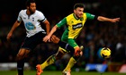Norwich rarely looked dangerous when crossing the ball, however, because Ricky van Wolfswinkel offers extremely little goal threat. Here he failed to attempt a shot or create a chance for a team-mate, although he did dispossess Nabil Bentaleb in the build-up to Snodgrass’s winner. The game’s only goal neatly summed up Hughton’s approach – to win possession and immediately attack down the flanks, and it also justified his continued use of Snodgrass and Nathan Redmond on the “wrong” wings, giving them freedom to cut inside and shoot.